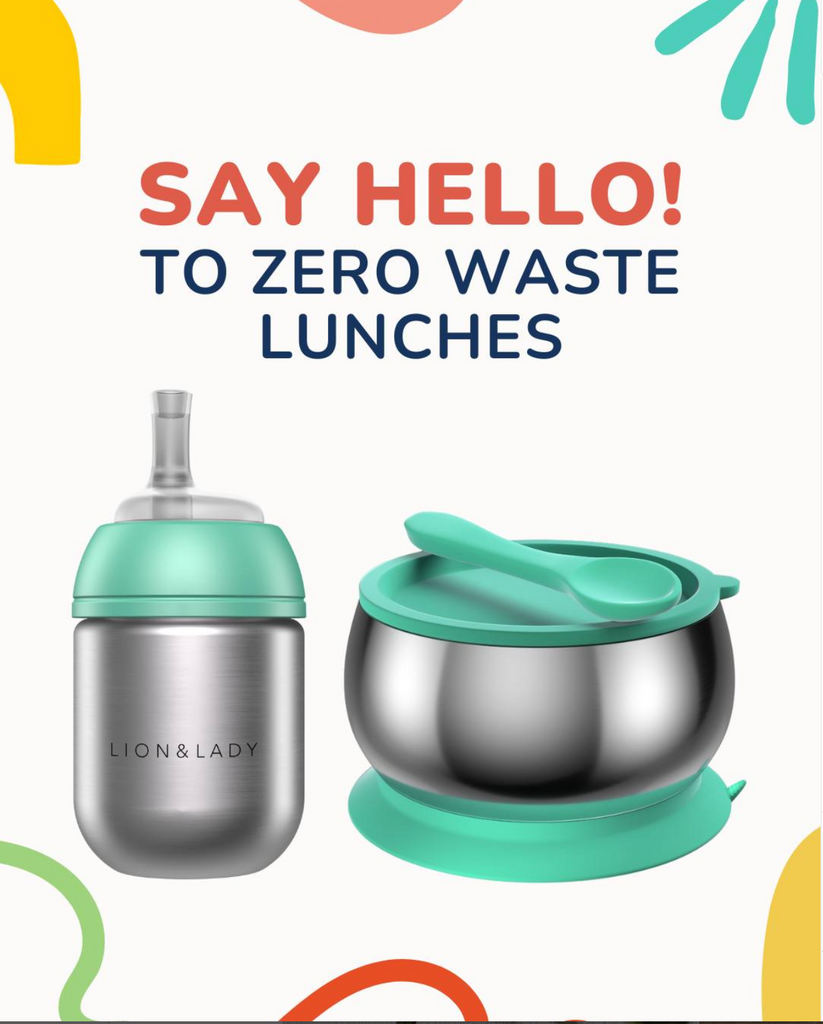 Lion & Lady 18/8 Stainless Steel Feeding Bowl with silicone suction base, airtight lid and spoon