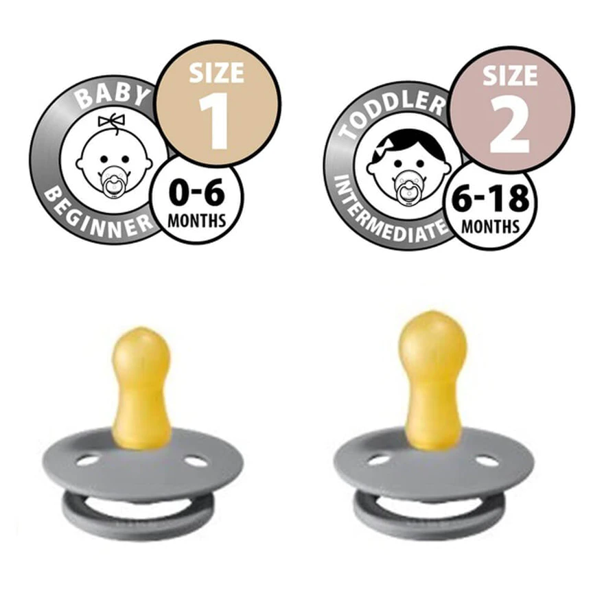 Material/size: Natural rubber latex size 1, 2 and 3. Size 1 & 2 are suitable from birth. Trend: Inspired by baby fashion of the season – always in the most popular colours to match the outfit.