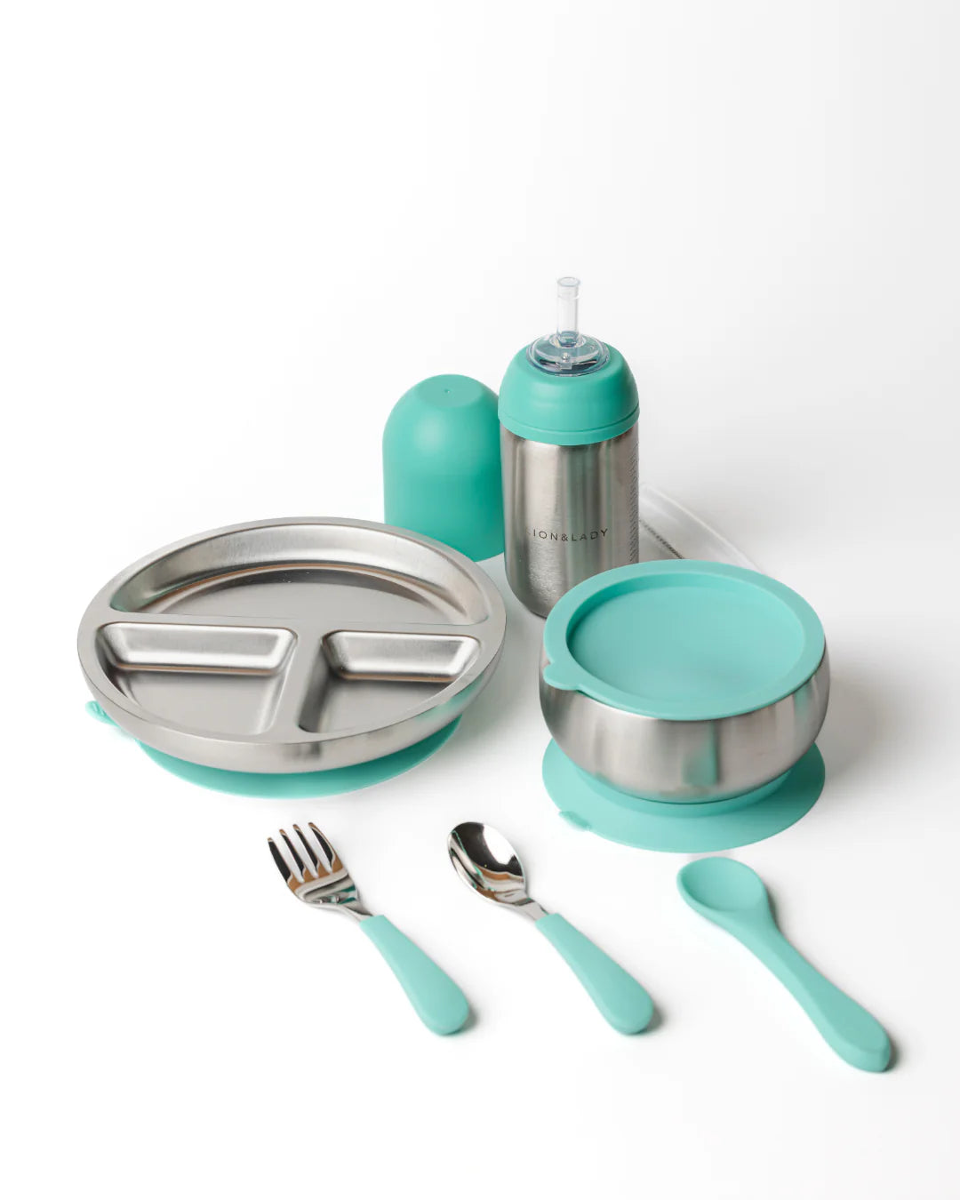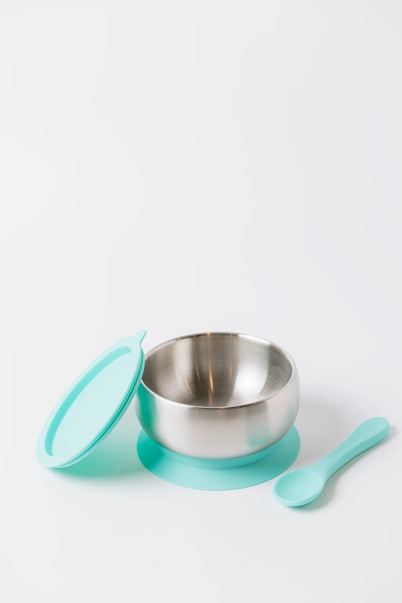 Lion & Lady 18/8 Stainless Steel Feeding Bowl with silicone suction base, airtight lid and spoon