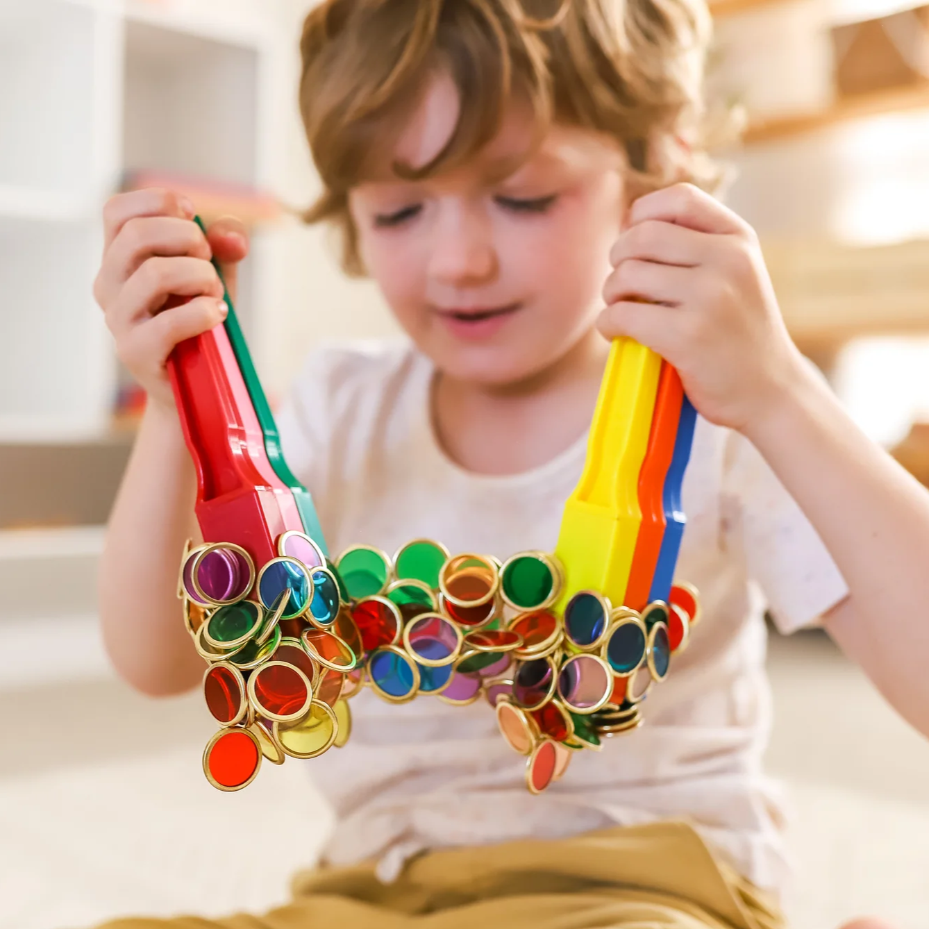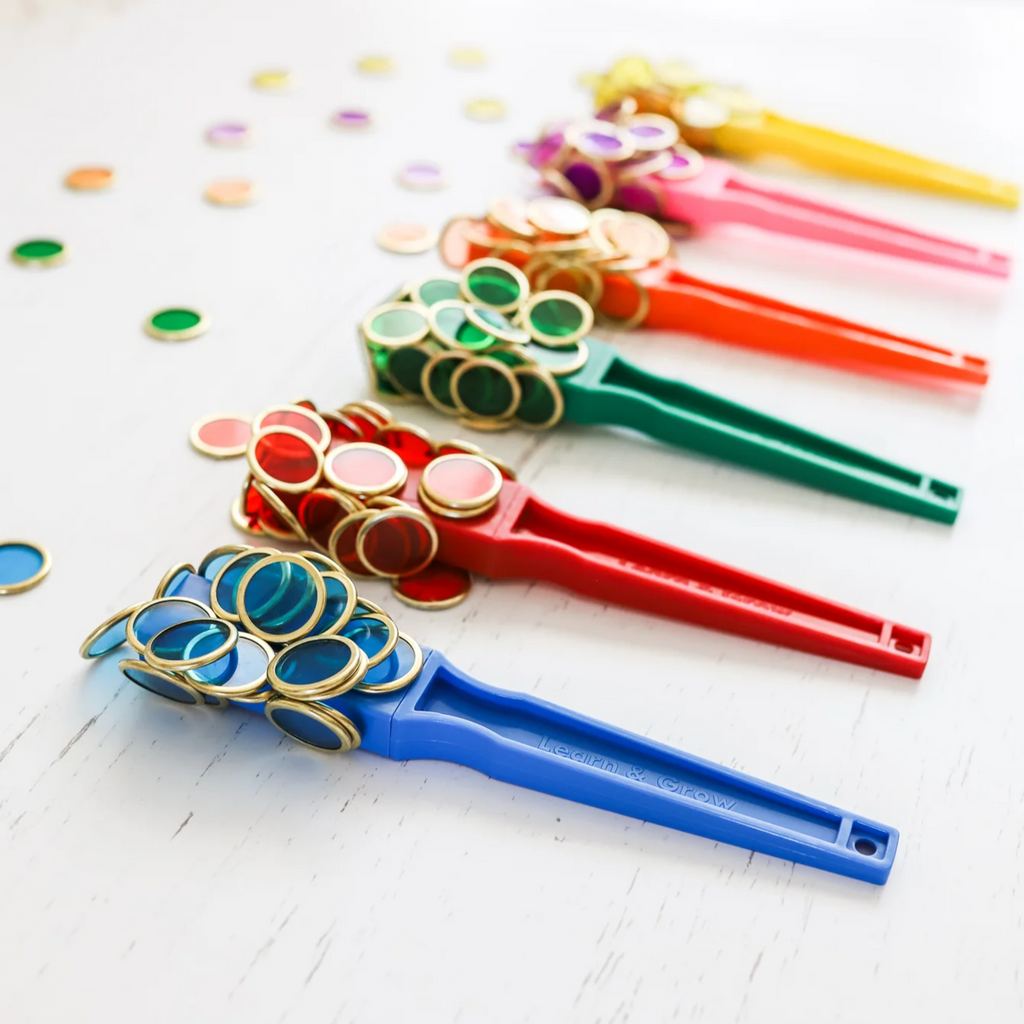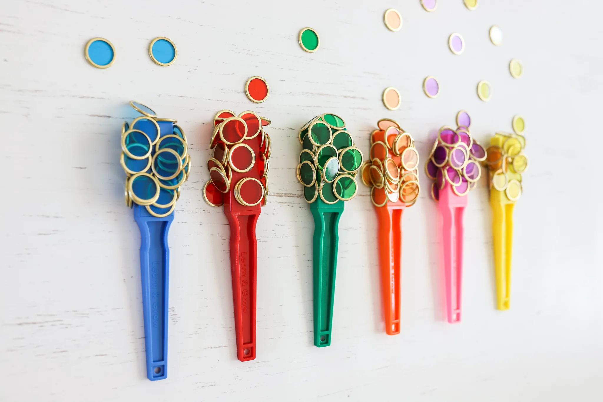 Each wand contains a permanent magnet folded into the end of a brightly coloured plastic handle which is durable and easy to clean.