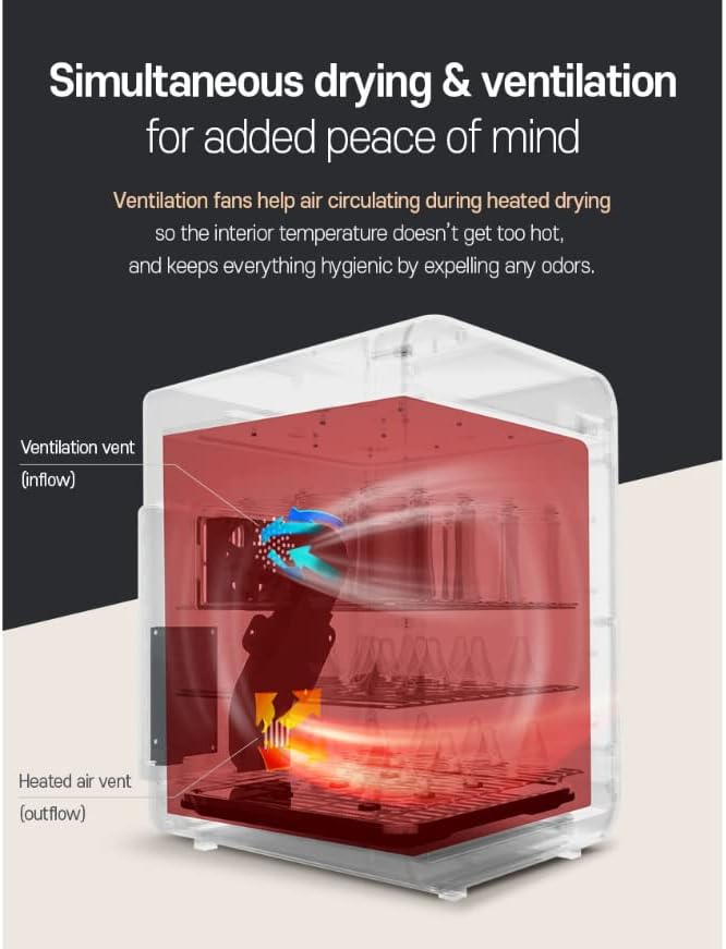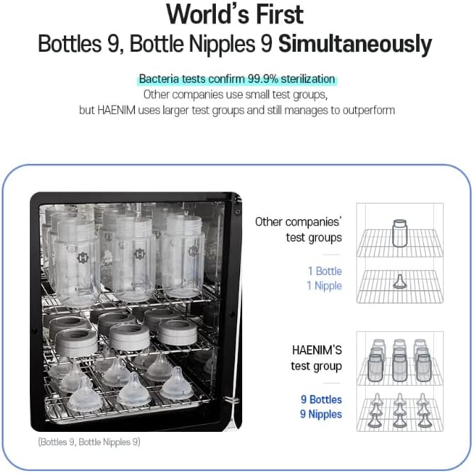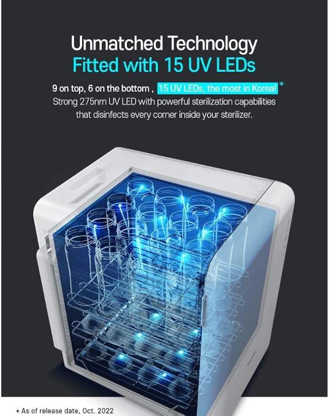 The Haenim Smart UV Steriliser 5th Generation saves time with its large capacity of up to 16 bottles! Additionally, the Smart Storage Function keeps items Sterile with automatic sterilising every 2 hours, to ensure bottles and accessories are sterile whenever you may need them.