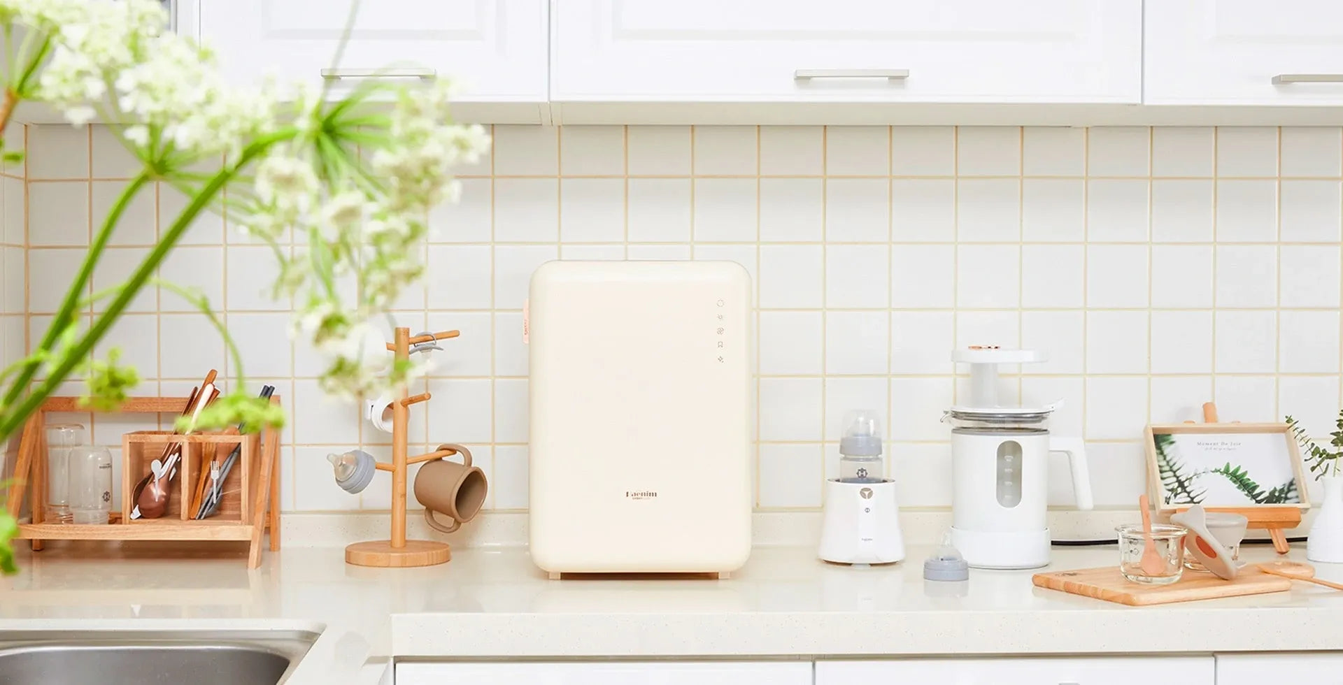 The ultramodern and sophisticated white and gold design looks great in any kitchen or butler's pantry. You can disinfect all your baby's products simply and effectively at the touch of a button.