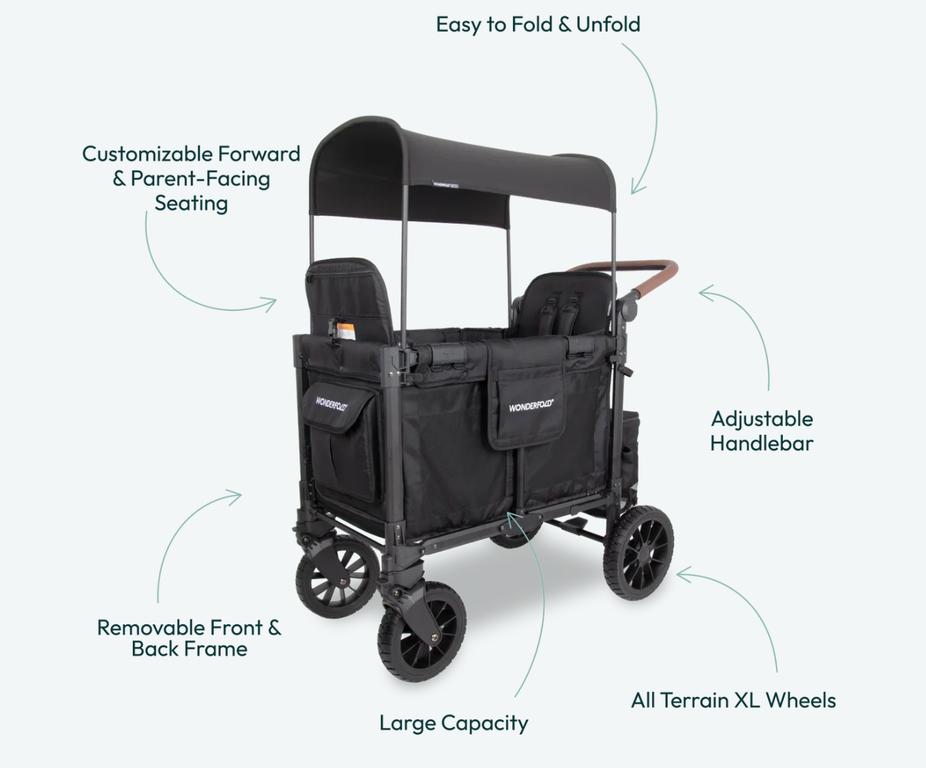 Wonderfold W2 Luxe Pro Stroller Wagon - Jet Black
