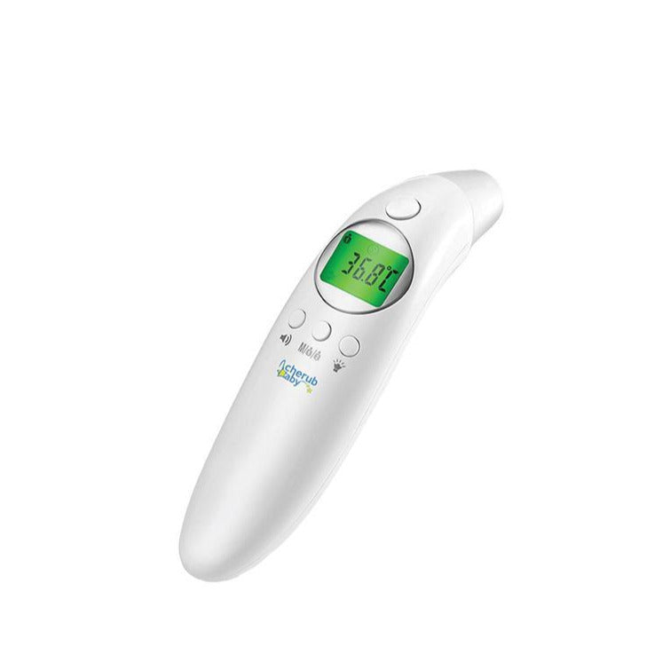 The Cherub Baby 4 in 1 Ear and Forehead Thermometer takes an infrared reading in just 1 second and requires no expensive replacement probe covers. Best of all the thermometer offers you the peace of mind of being able to cross check between ear and forehead readings in a flash with a fever indicator that takes out the guesswork.