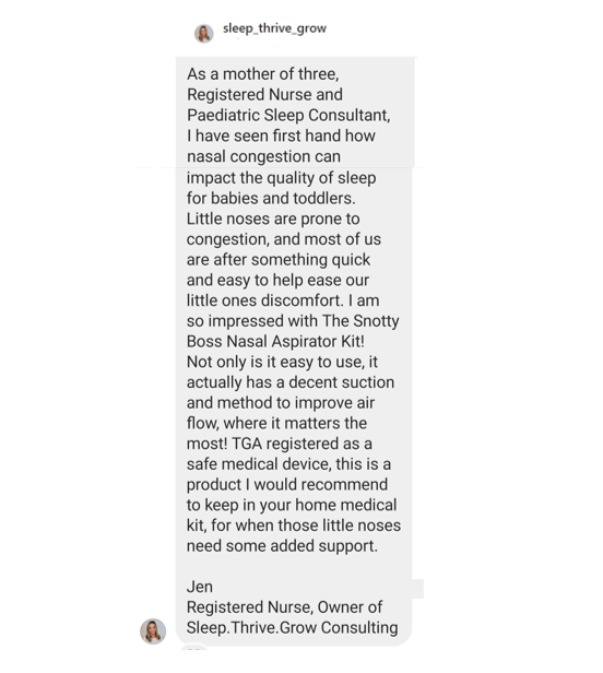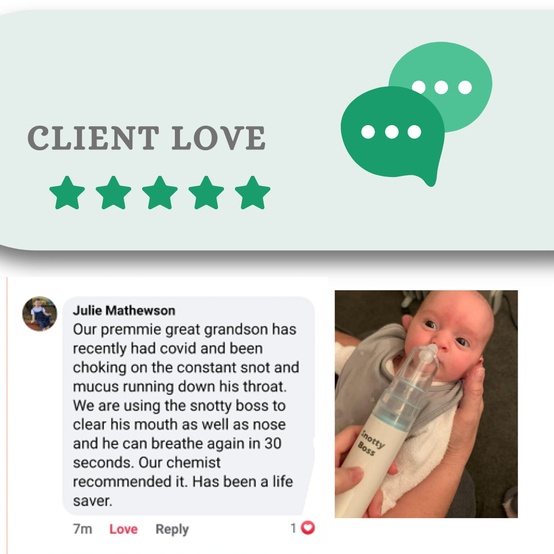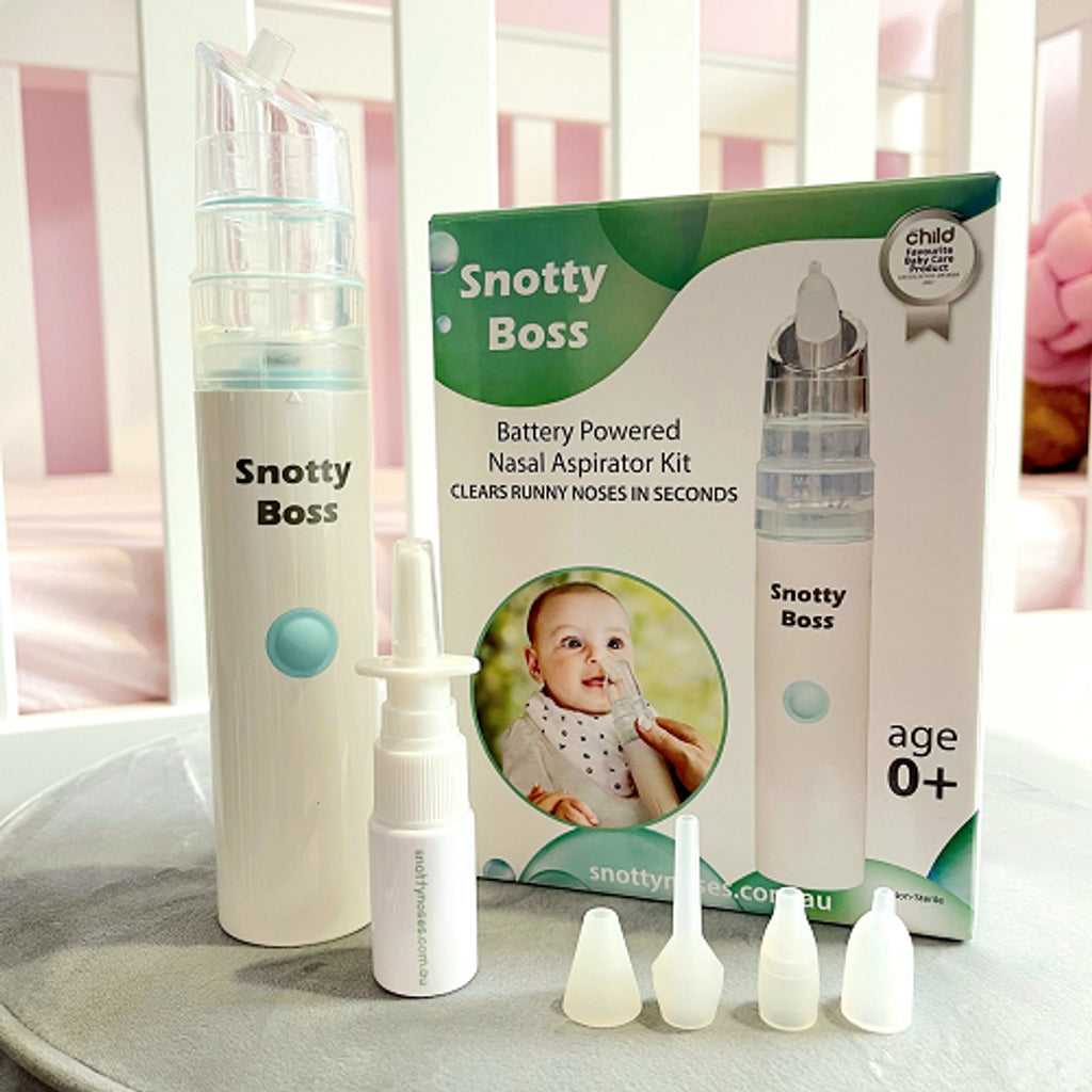 - Three size of nozzles - Snotty Boss is designed for newborns. A small newborn silicon nozzle comes as part of the kit, so it fits the tiniest nostril, even premature babies.