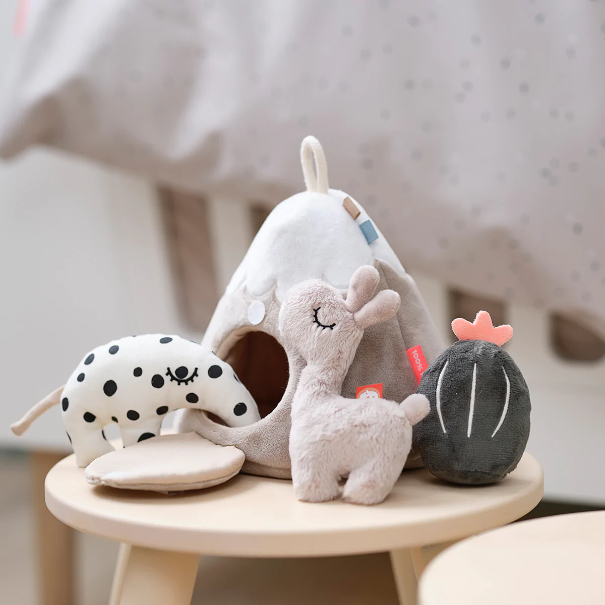 INCLUDES: One Lalee Hide & Seek Mountain and three little sensory characters.