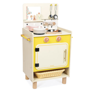 Step into the heart of family traditions with the Sunshine Kitchen, a delightful play kitchen designed to whisk little ones into a world of culinary creativity and imaginative fun. Inspired by the timeless charm of a country kitchen, this compact wooden set brings nostalgia and playfulness together in perfect harmony. Its compact size ensures it fits snugly in any play space, yet it?s packed with thoughtful features and accessories to keep budding chefs entertained.