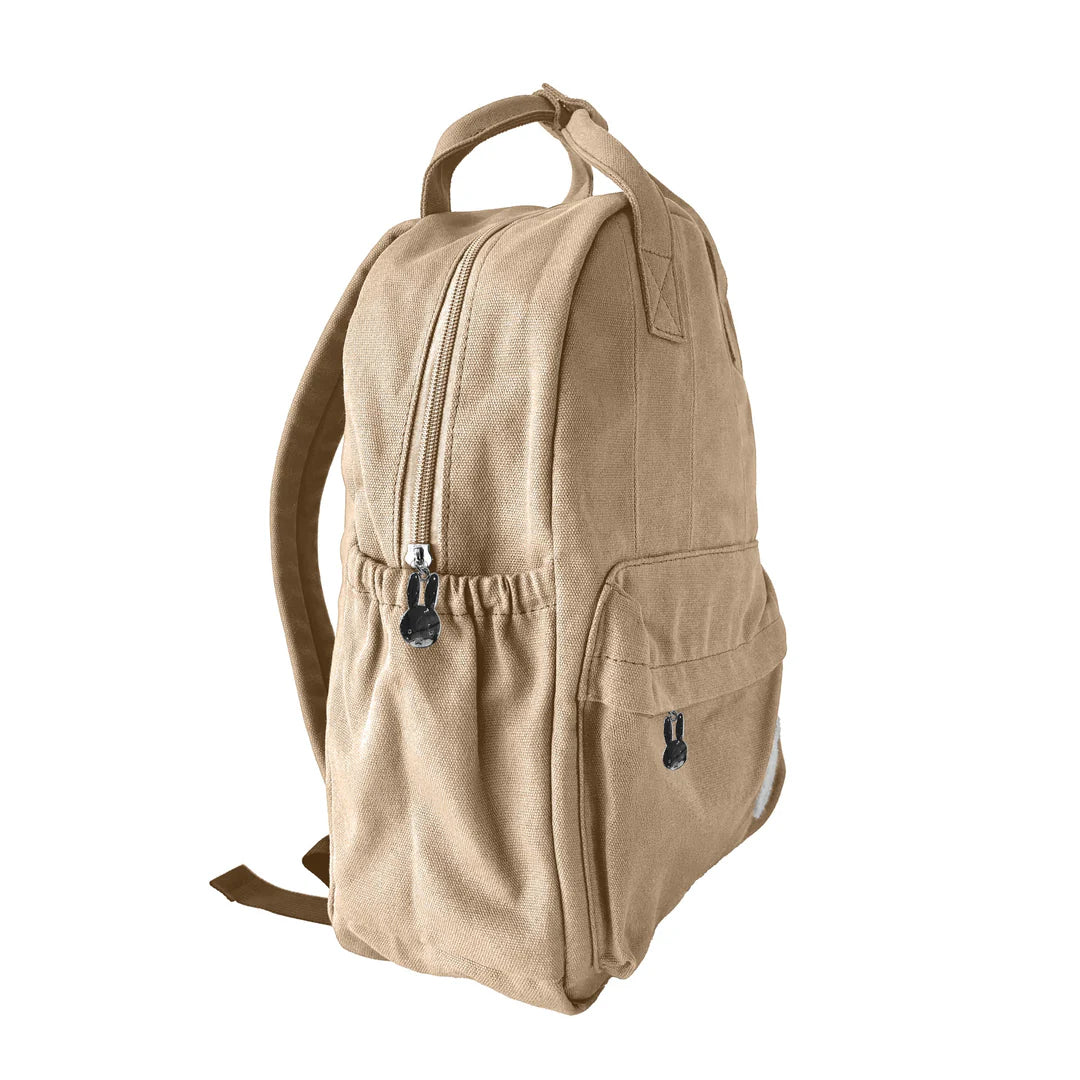 The charming Miffy canvas backpack is lightweight, and made from durable cotton canvas. Featuring the beloved Miffy character in minimalist design. it includes practical compartments for everyday essentials, making it perfect for school, travel, or casual use.