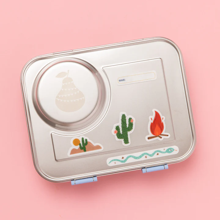 1x 3-compartment stainless steel lunchbox (with non-removable leak-resistant silicon seal on the lid)