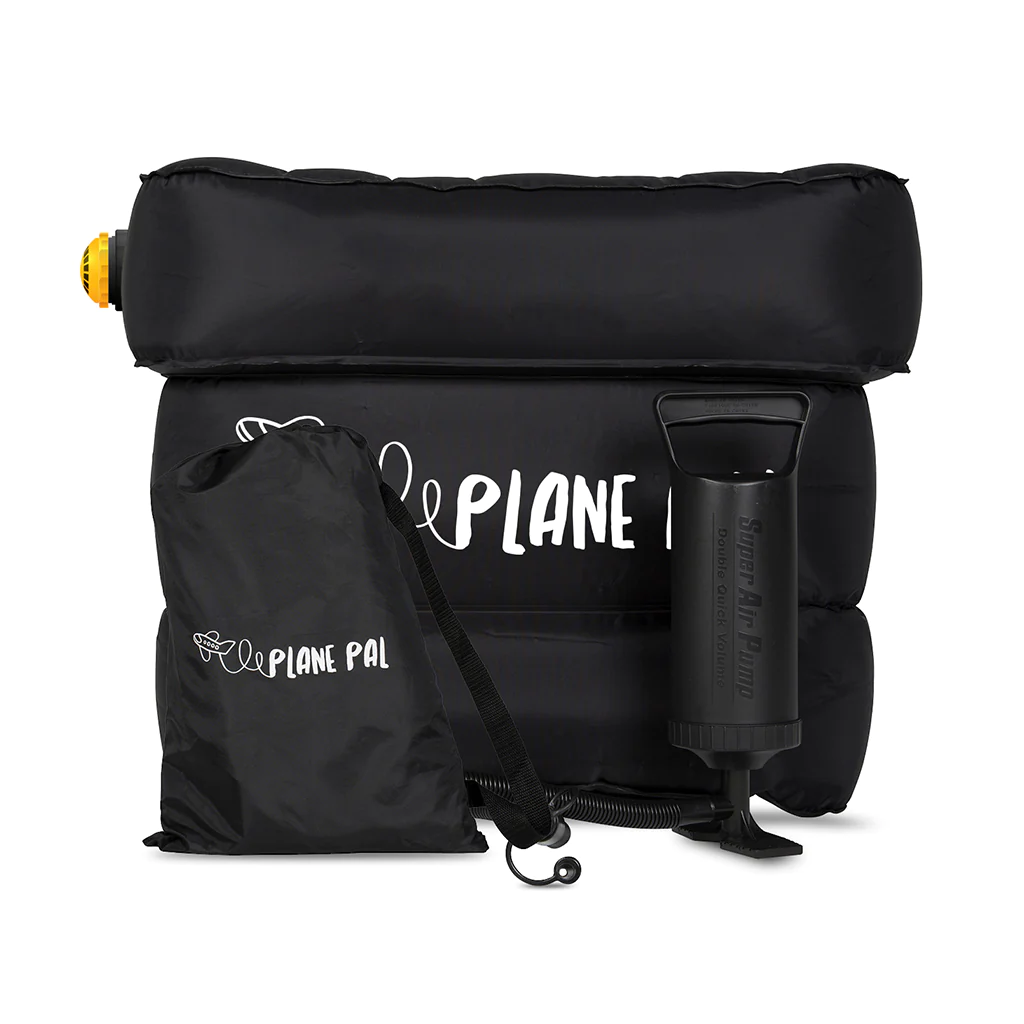 Plane Pal™ is a custom designed inflatable cushion that fills the space between your child’s seat and the seat in front. Made from high quality nylon, Plane Pal is light weight and compact and comes with a pump for stress free, easy inflation after take off. Plane Pal can also be used on trains and buses and for car travel.