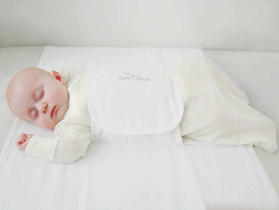 The Sleepwrap baby wrap! Giving newborn to 2 year olds natural movement and importantly helping prevent: baby/child sleep time fatalities and cot injuries; preventing PWS/flat heads; giving a safer, more comfortable, restful sleep.