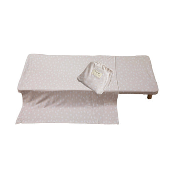 Designed specifically for childcare/daycare stacking beds and mats, our sheets lay soft and smooth against little ones' skin. Made from 100% cotton jersey with our unique 4-way stretch, these sheets will last wash after wash. Features: • Made from durable yet soft and breathable stretchy 100% cotton jersey that stretches to fit a variety of size stacker beds. • The generous top sheet (95x95cm) sewn on to side so it'll never get lost • Matching storage bag with name label. • Thick and durable elastic edging and additional elastic loops on each corner to stretch over daycare bed legs for a secure fit. • Compact to fit in child's bag. • Machine Washable Specifications: • Made from 100% cotton Jersey • Bottom fitted sheet: 135 x 55 x 6cm • Top sheet: 95 x 95cm Product Care: Warm hand or gentle machine wash with similar colours. Line dry or gentle tumble dry at low temperature. Warm iron. Do not dry clean.