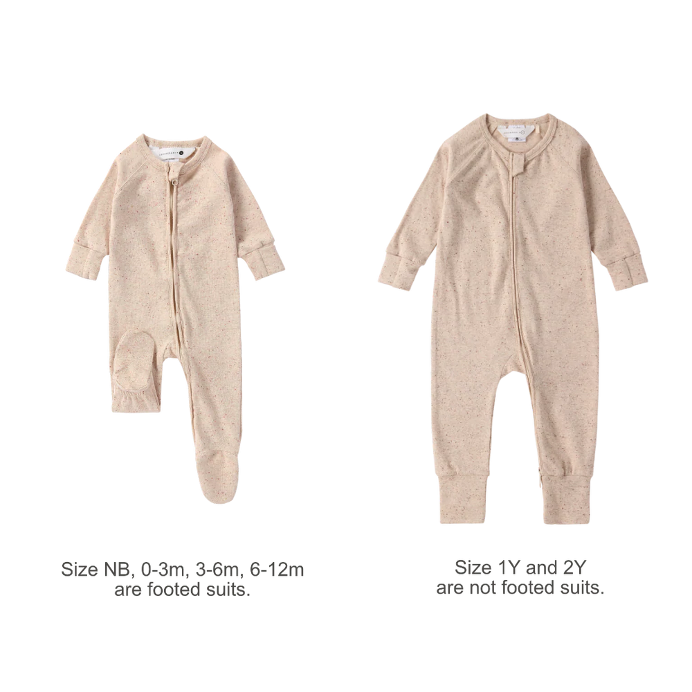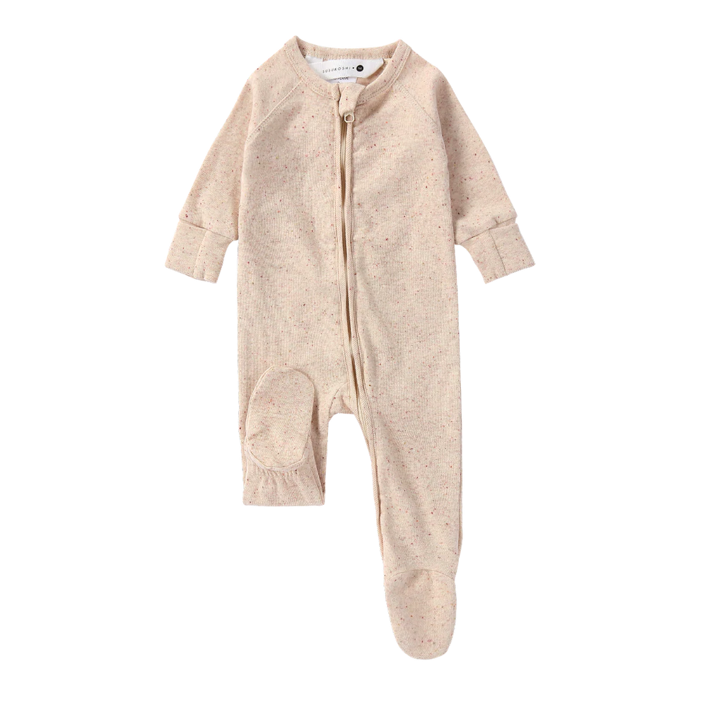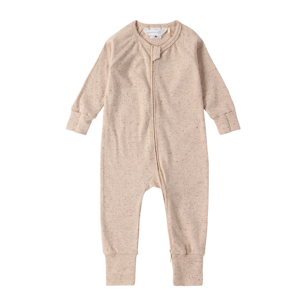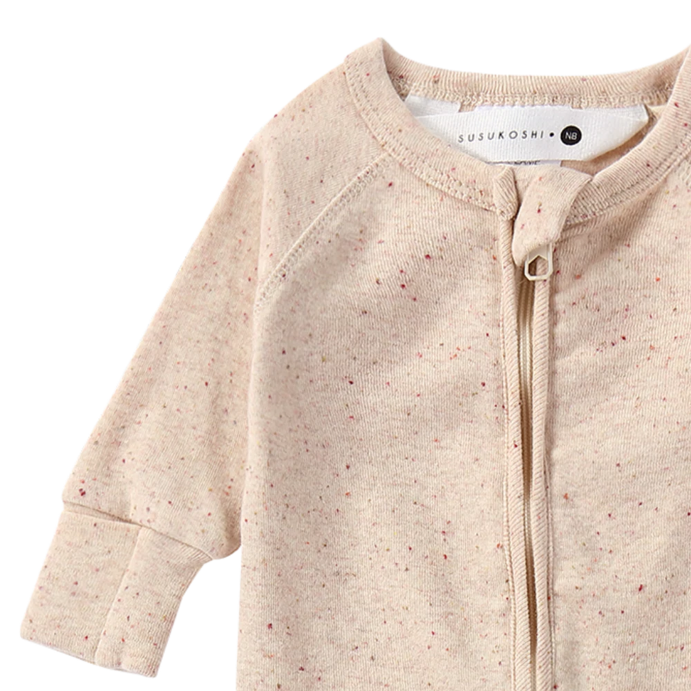 Susukoshi Organic Zip Growsuit - L/S Beige Speckled